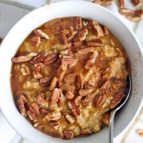 - Pumpkin Spice: Add a little canned pumpkin with the milk, as well as some pumpkin pie spice mix to the oats when they cook, and drizzle maple syrup for sweetness.