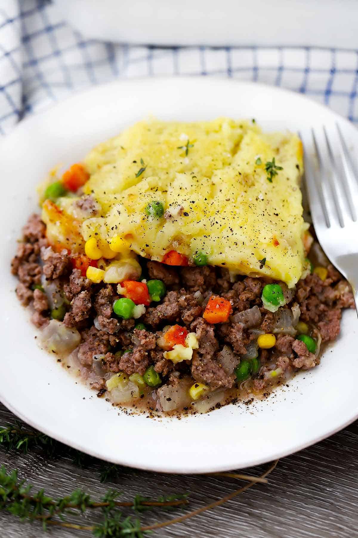 And you can also use fresh veggies if you want. If you do, I recommend giving them a quick sauté or steam to soften them up a bit before adding them to the shepherd’s pie. Frozen veggies come partially cooked, since they’re blanched before freezing.