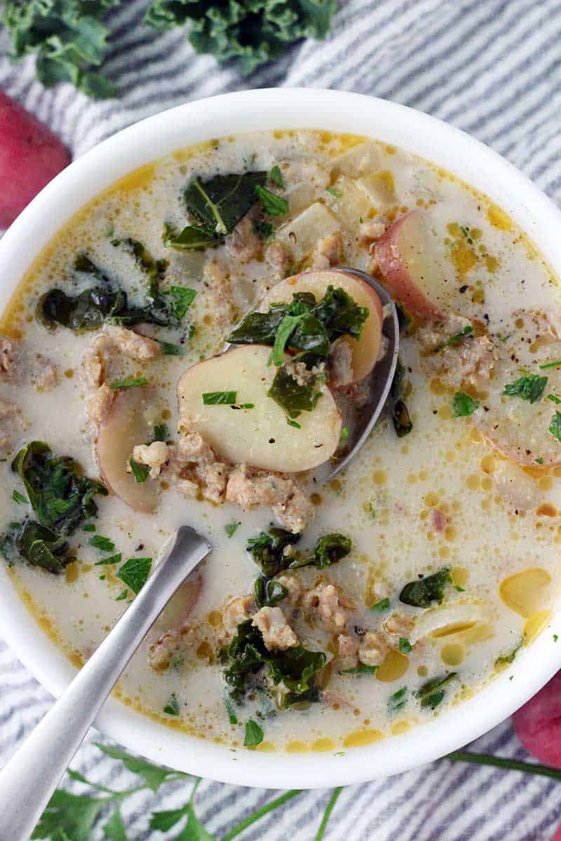 This soup is on the decadent end of things, since it’s made with pork sausage and half and half. You can get even more decadent if you want and use heavy cream instead!
