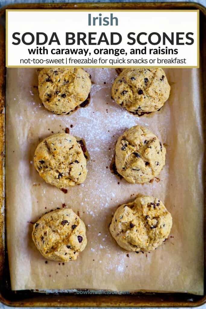 These Irish soda bread scones will pouf up nicely from the addition of baking soda, so be sure to allow them plenty of room on the baking sheet!