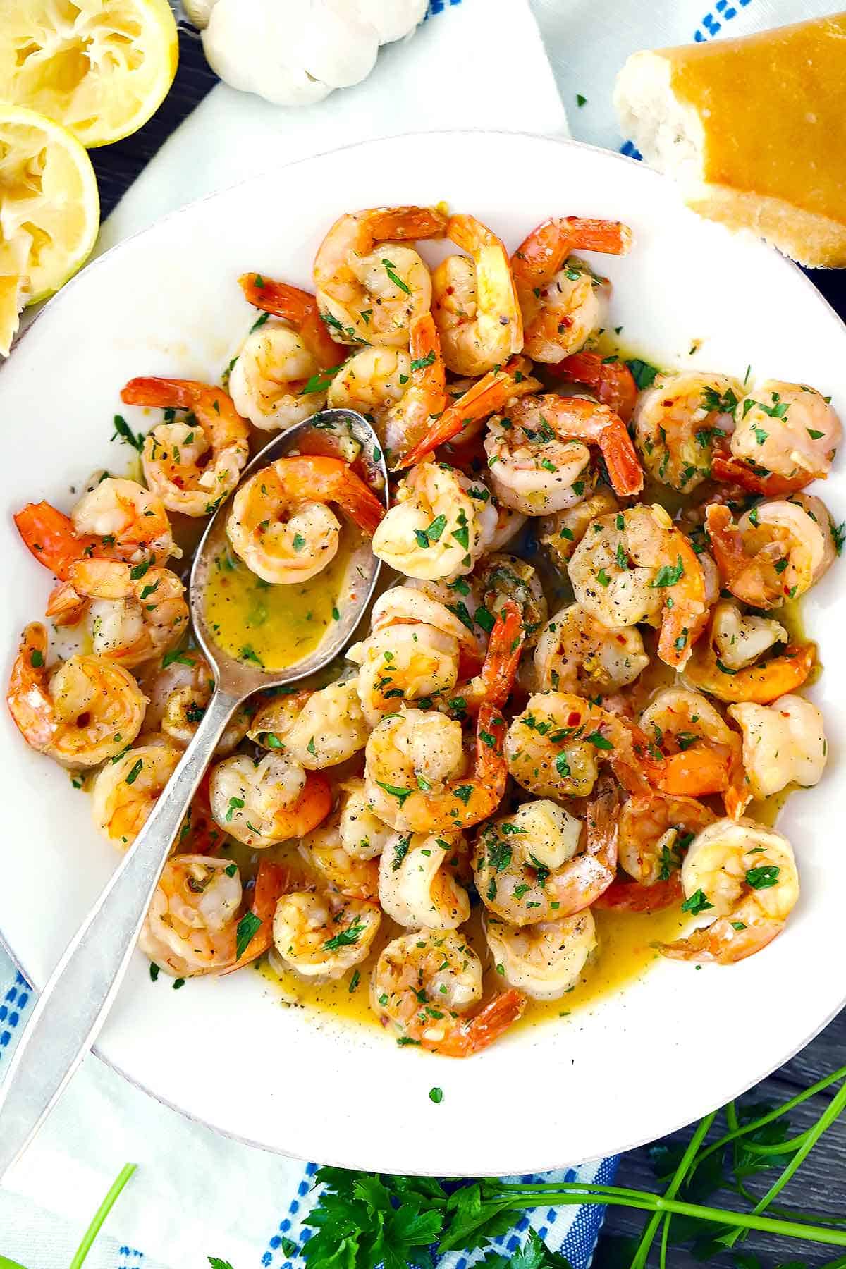 This Classic Shrimp Scampi Recipe is so easy to make in only 15 minutes! It’s perfect served with crusty bread or pasta to soak up all the luscious garlic butter sauce for an easy weeknight meal.